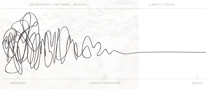 I quite like Damien Newman’s, of Central Office of Design, design squiggle (depicted above) as a starting place.